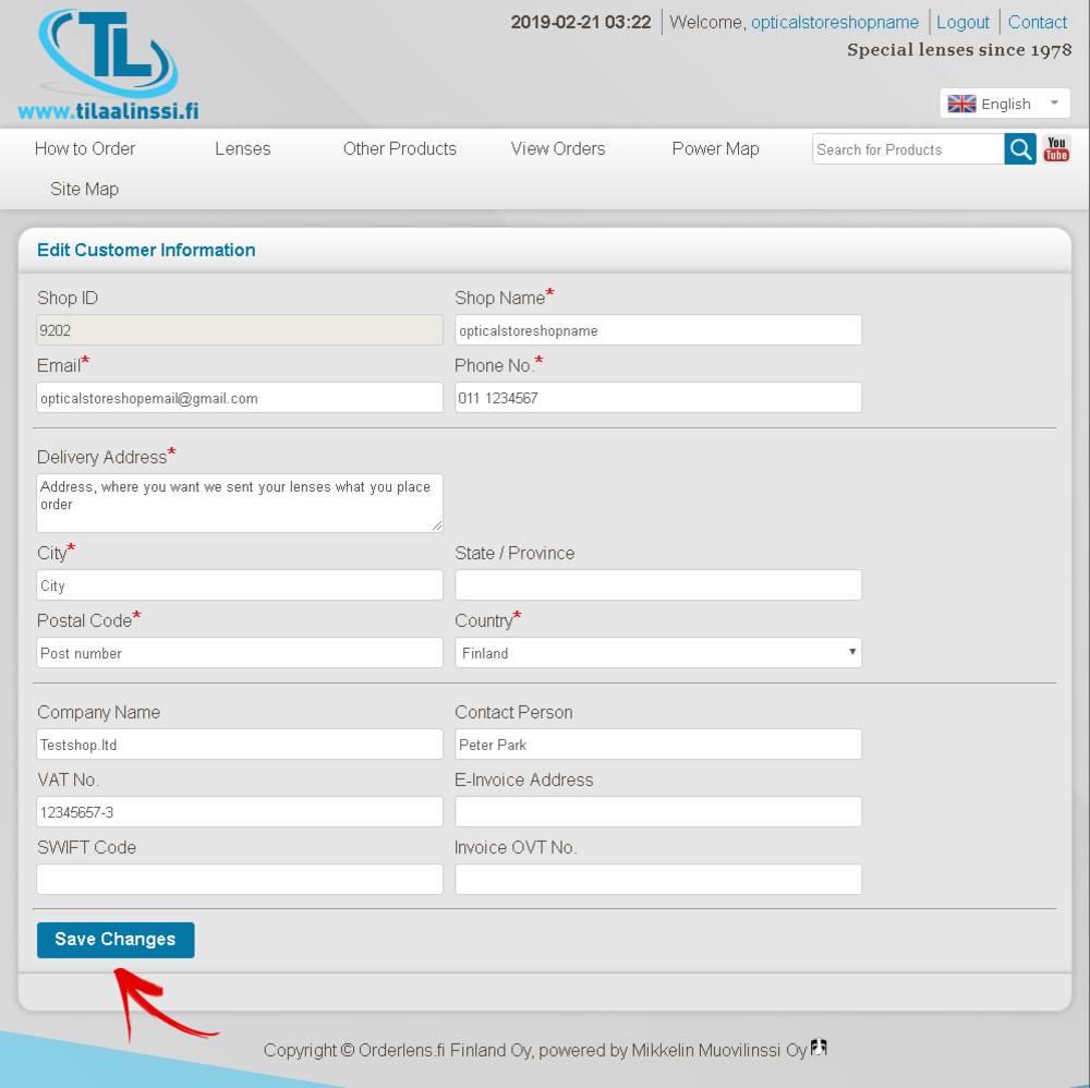 Make sure that the address and electrical invoice info is correct, and then you can save your customer data in our shipping address and invoice database.