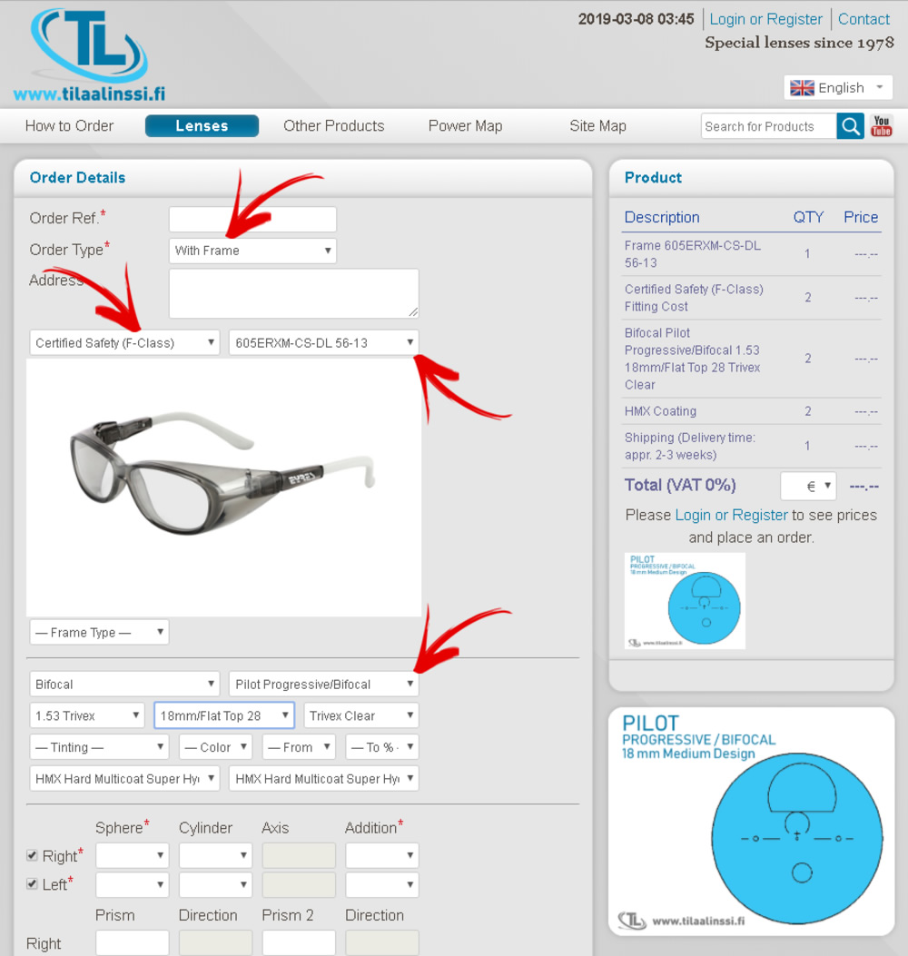 If you would like to have electrician certified safety, you can choose the “Product“ → “Pilot Progressive/Bifocal.”