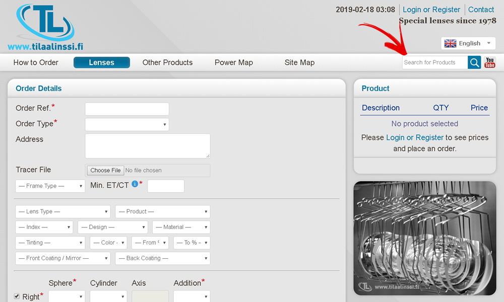 With the search bar you can quickly find products that you are looking for. For example, if you are looking for Bifocal with 1.67 index, you can type “1.67 bifocal” into the search field: